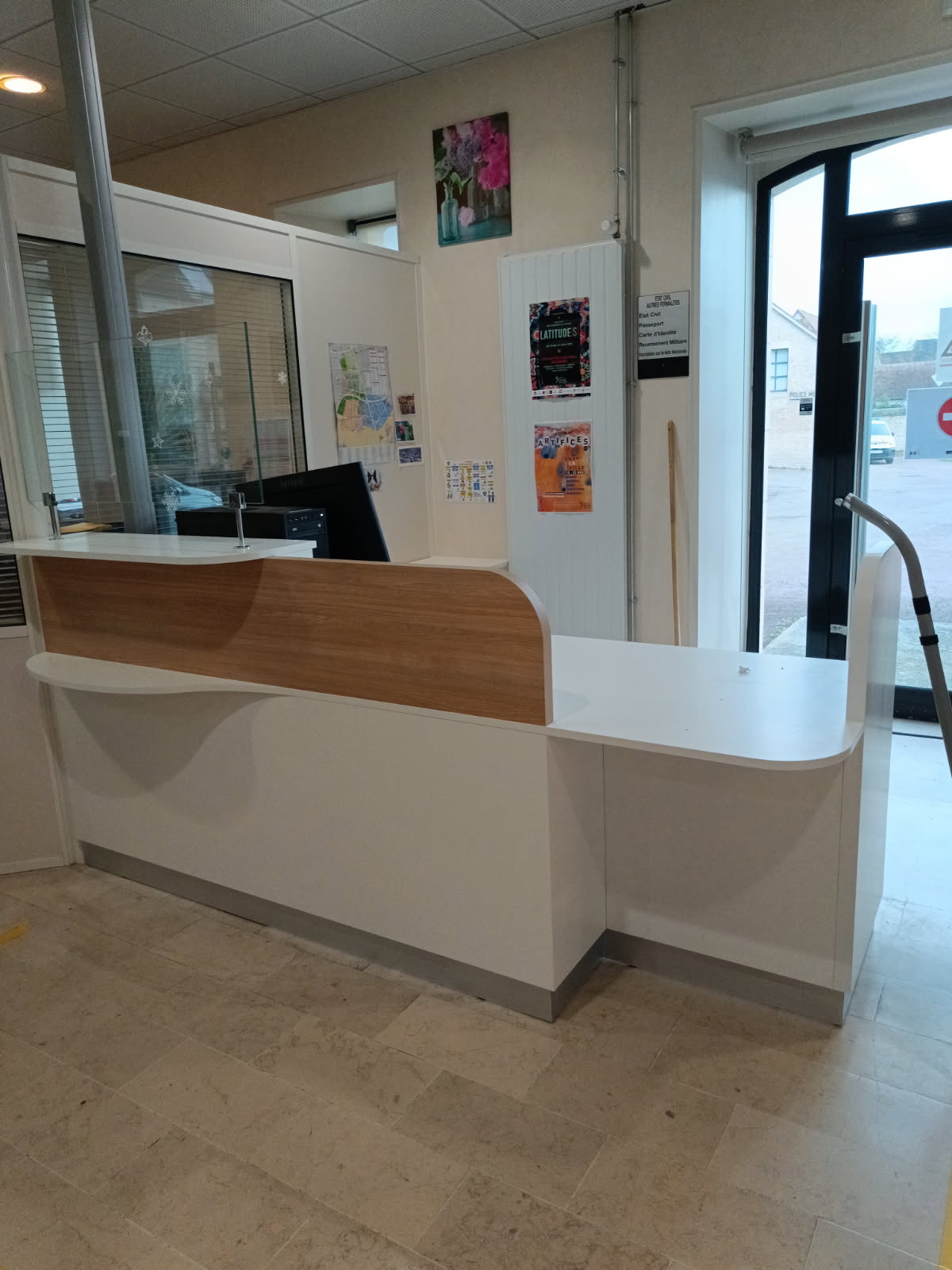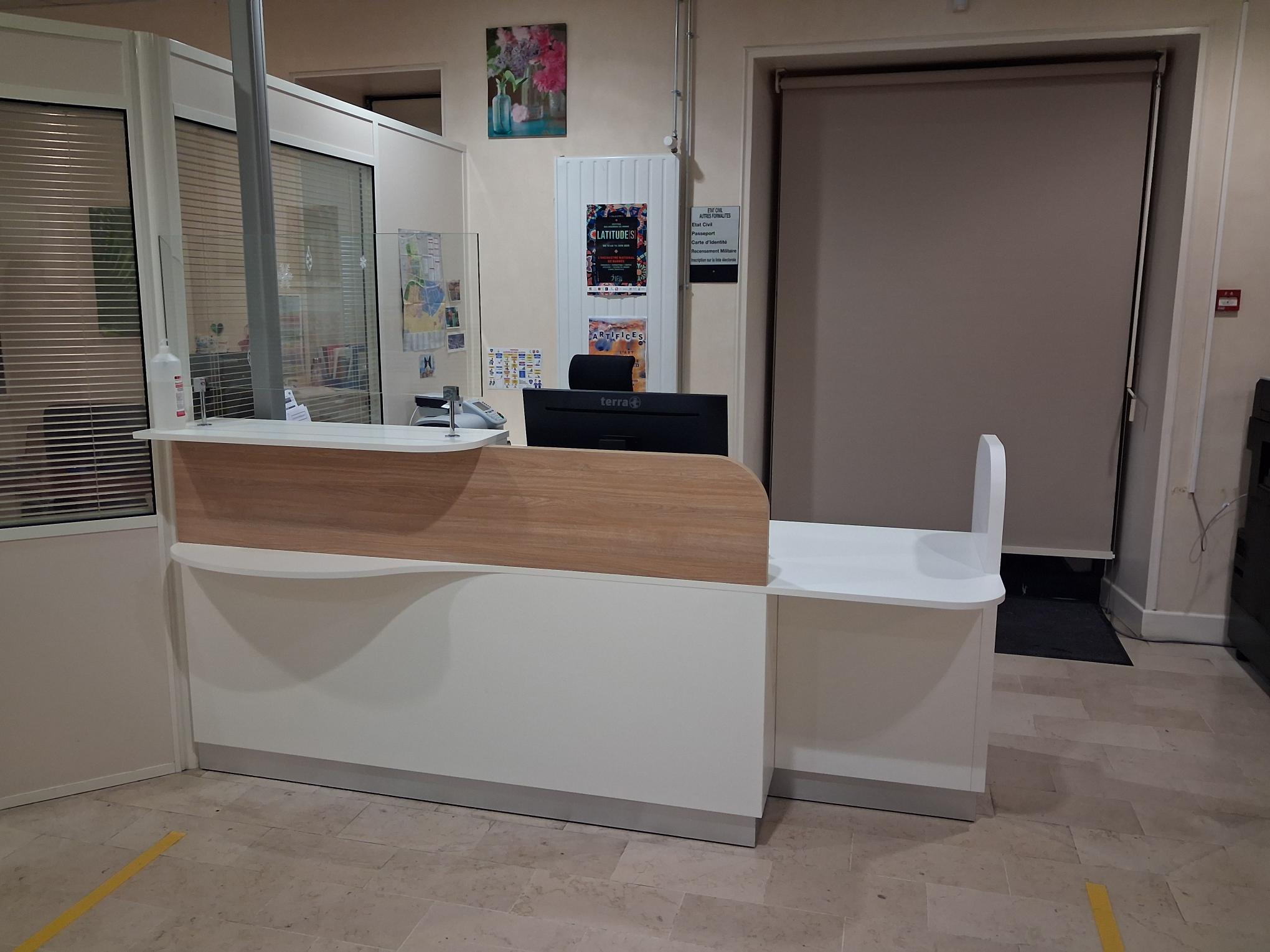 Comptoir banque d’accueil adapté PMR pour la Mairie d’Ifs près de Caen
