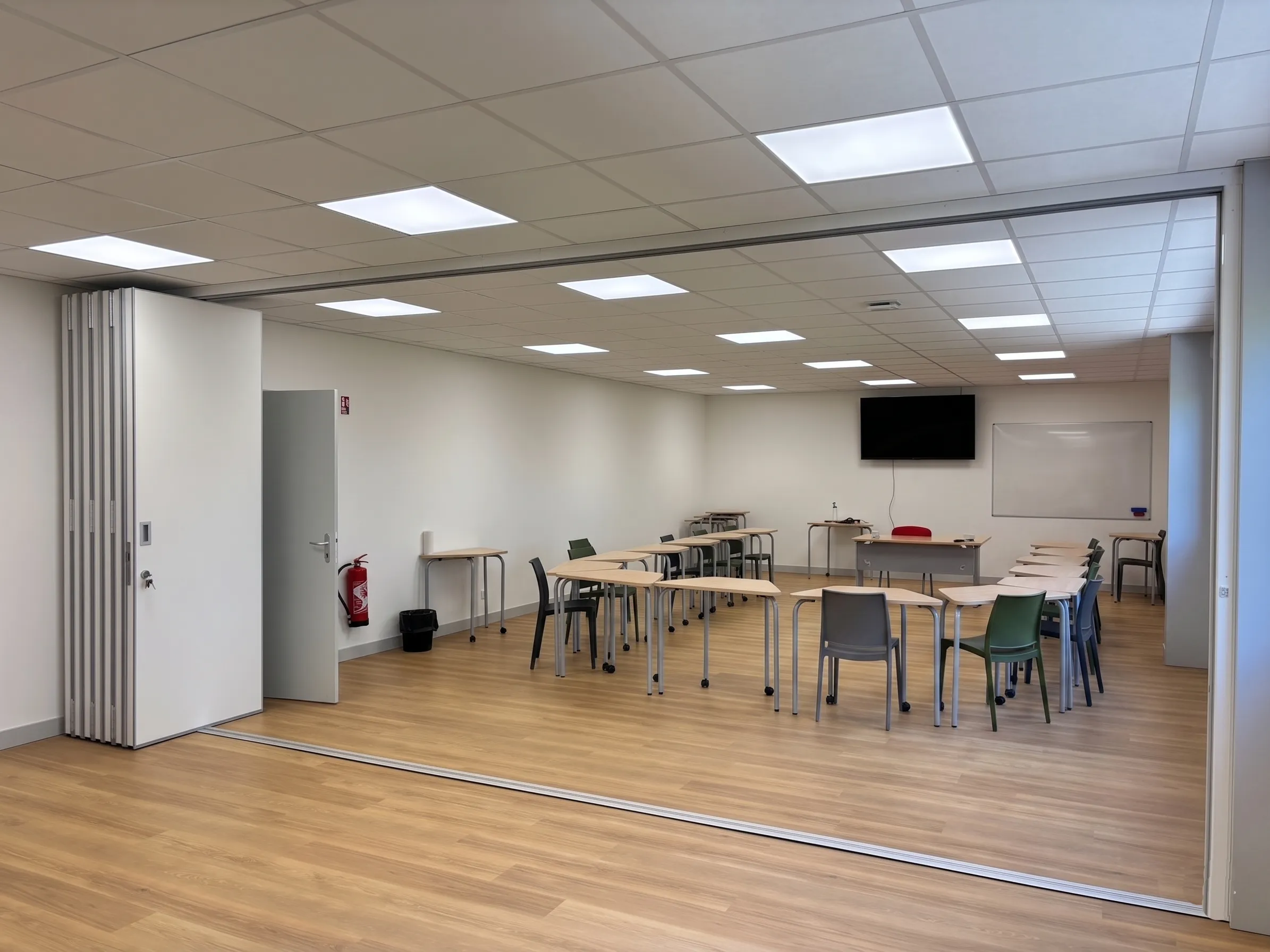 Fourniture d’un mur & cloison mobile de bureau acoustique 41 dB AcoMagic fabriquée en Île-de-France par Acoplan à Goignières (78) et installation dans les nouveaux locaux tertiaire de la SMN à Mondeville près de Caen, afin de partitionner l’espace de la salle de réunion.