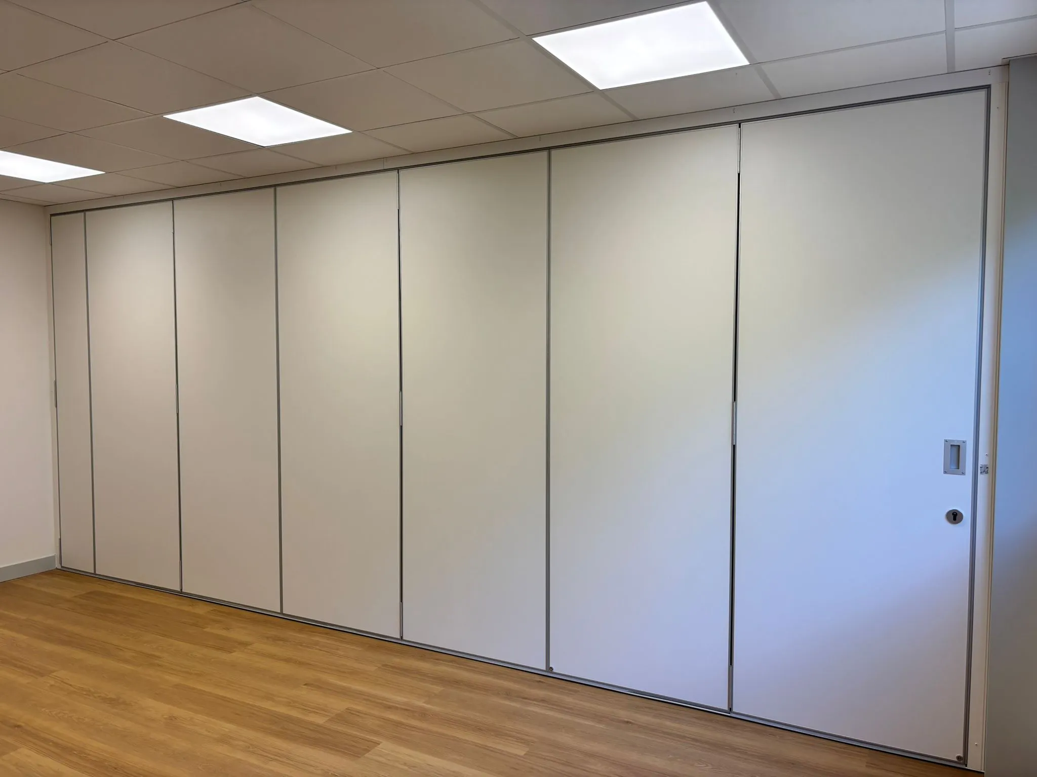 Equipement d'un mur et cloison mobile acoustique 41 dB pour salle de réunion dans un bureau à Caen (Vue mur fermé)