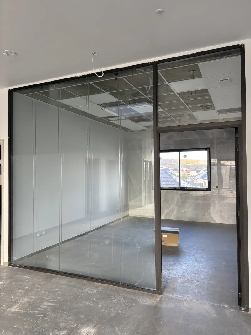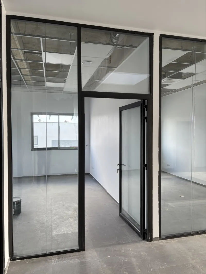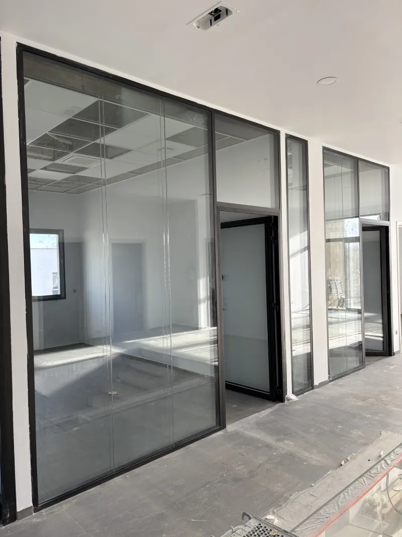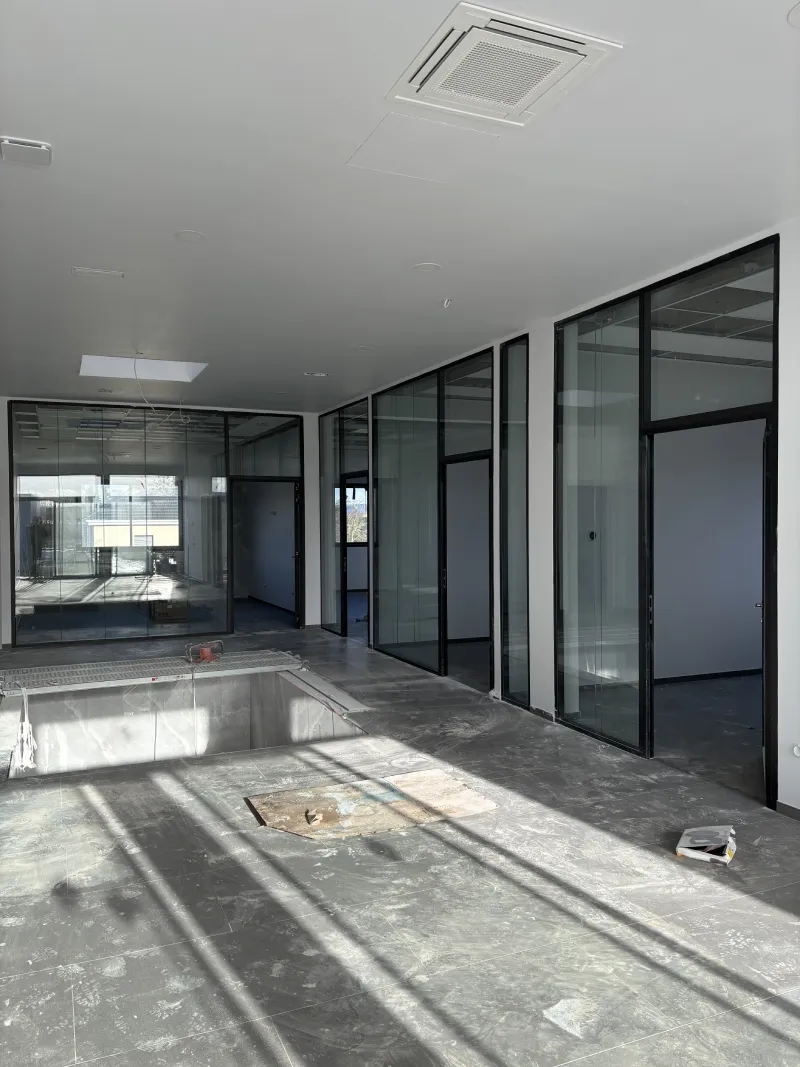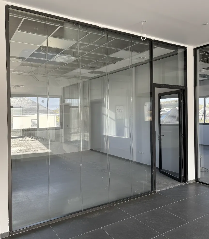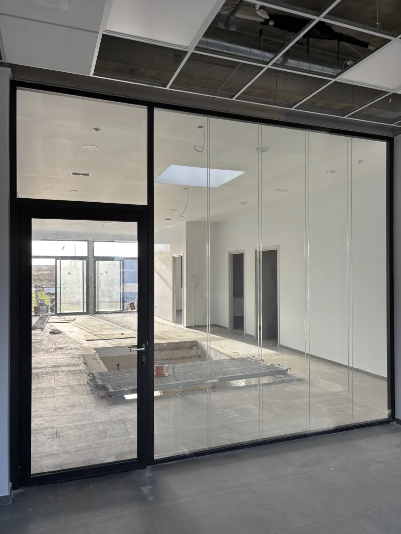 Installation de cloisons modulaires double vitrage de grande hauteur en Normandie