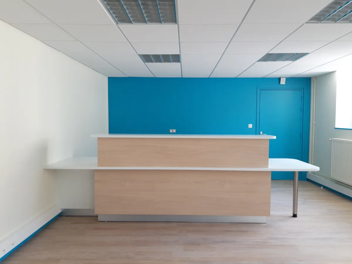 Découvrez notre nouvelle réalisation. Meuble d’accueil et meubles de présentation de vêtements dans une boutique à Isigny dans le département Calvados en Normandie.